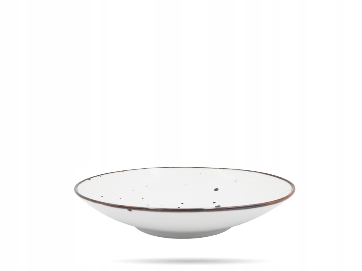 Глибока тарілка діаметром 22 см із серії Alumina в кольорі Cottage White від польської компанії Porcelain Bogucice. Серія Alumina в кольорі Cottage White — це лінія білої порцеляни з нерегулярними, темними та крапчастими візерунками. Цей дизайн додає характер і цікавий вигляд.