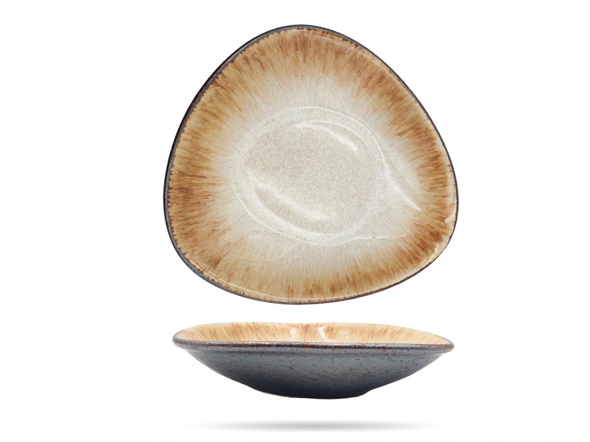 Кера кераміка доломіту - страви кераміки, глазуровані зверху, матовий знизу. трикутна глибока плита. діаметр 27 див. Висота 5 см. Його можна використовувати в посудомийних машинах, сходах, мікрохвильових печах, а також у духовці до 250 ° С, ідеально підходить для професійної гастрономії.