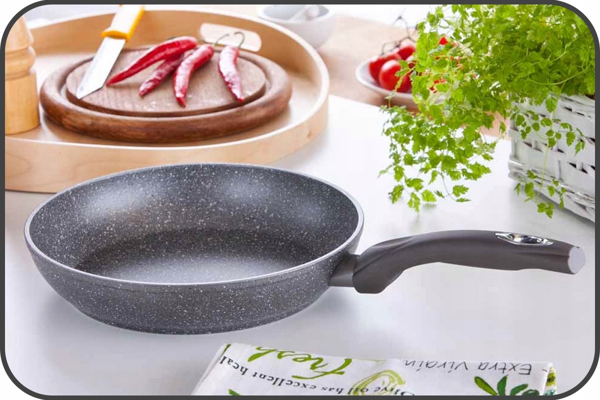 ✅ Високоякісне антипригарне покриття з ефектом каменю має антипригарні властивості, що запобігає пригоранню їжі