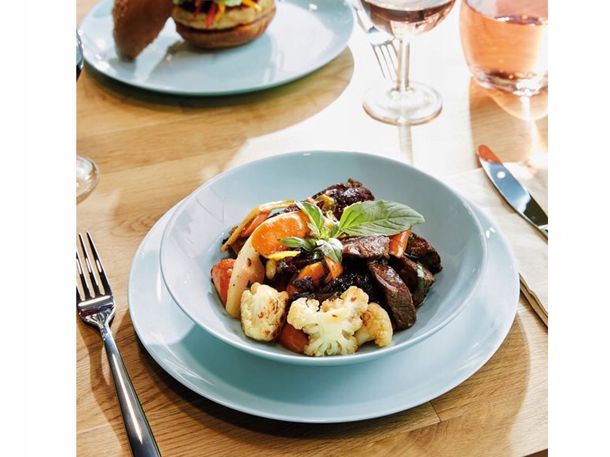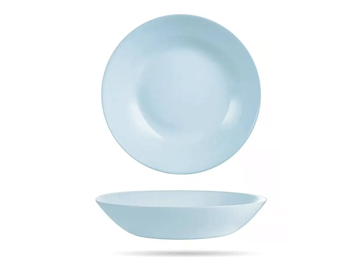 4 тарілка для супів, кремів, крупи, рису та інших страв . Гладка, світло -блакитна тарілка, виготовлена з загартованого скла - міцна і стійка до пошкодження. Можна безпечно мити в посудомийній машині.