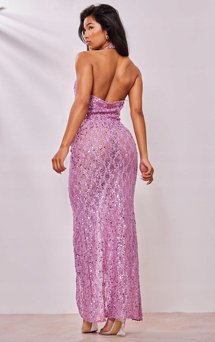 ГЛИБОКИЙ ВИЗІЙ З ПАЙЄТКАМИ PRETTYLITTLETHING 42 LILA MAXI DRESS SLOT