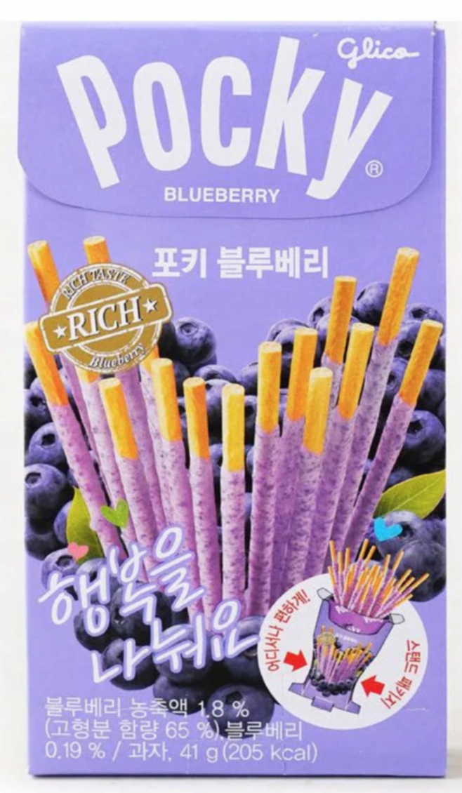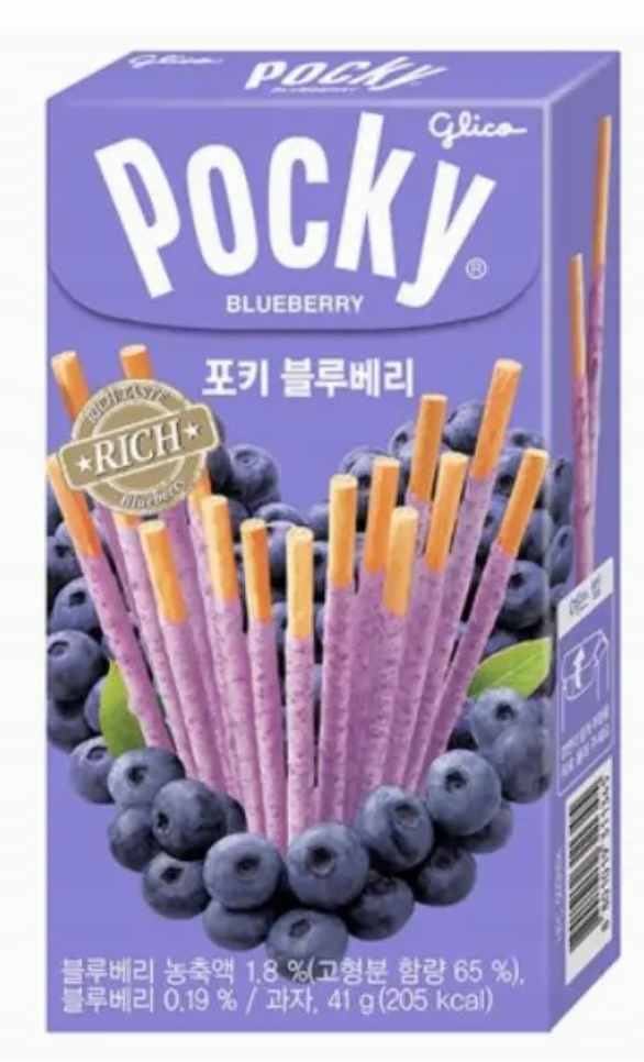 Pocky Blueberry – це японська закуска, яку виробляє компанія Glico, відома своїми інноваційними та смачними солодощами.