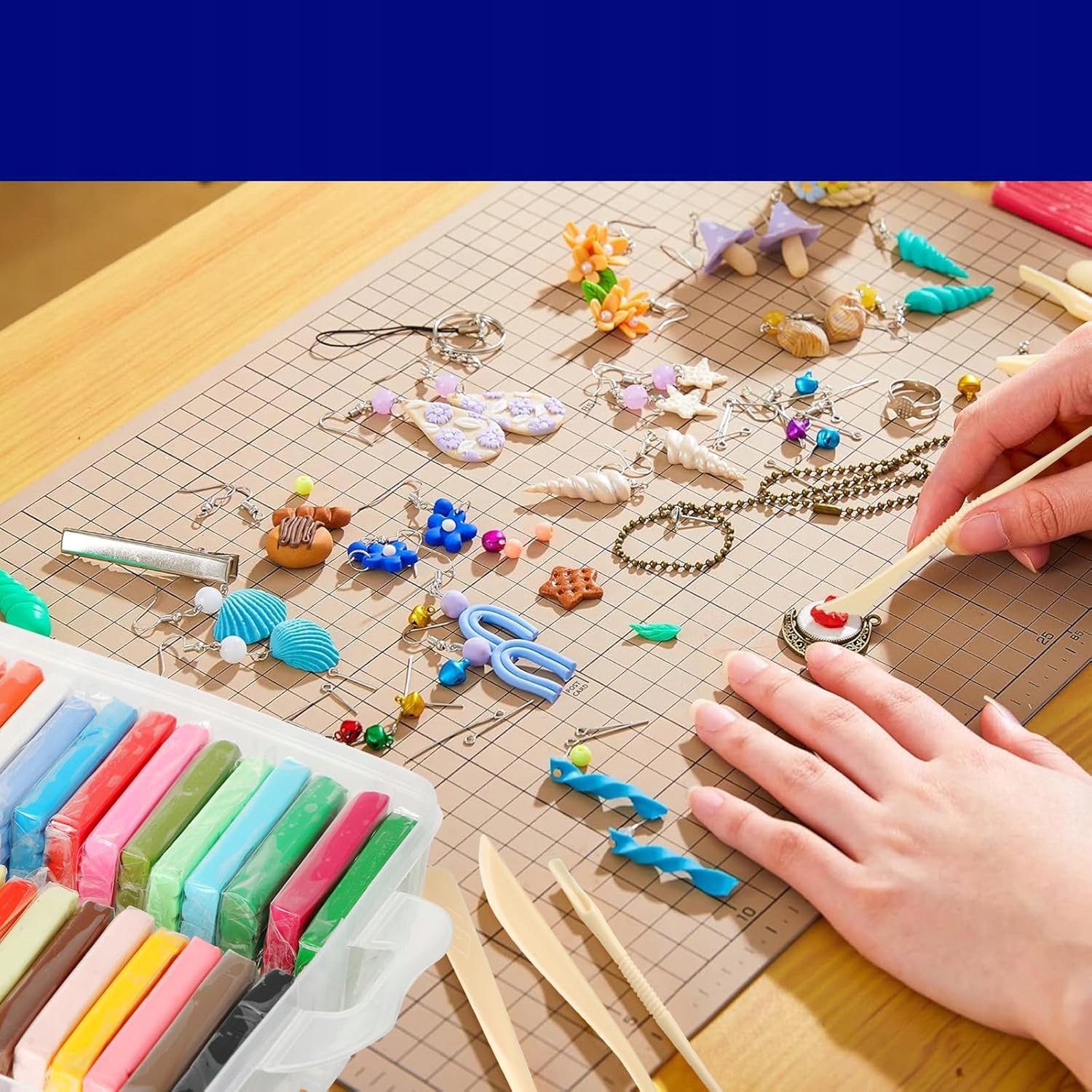 ✨✨ Набір глини включає: Набір полімерної глини включає 50 яскравих кольорів із 5 глиняними інструментами та 36 аксесуарами: 1 інструкція, 13 голок у формі 9, 4 ланцюжки для телефонів, 6 гачків для вух, 1 брелок, 1 тримач для брошки, 1 тримач для каблучок, 8 намистин і 1 тримач для шпильки. Кожен розмір: 1,97 x 1,18 x 0,39 дюйма, вага: 20 г / 0,71 унції