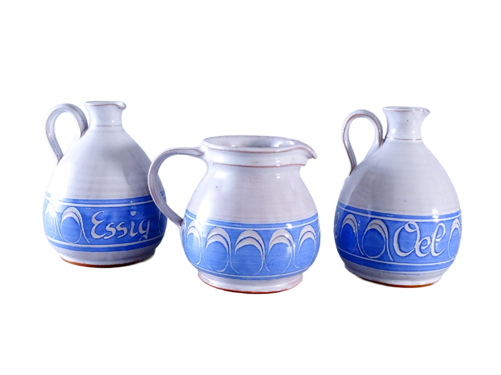 Глечик має висоту 10 см і діаметр 9,5 см, ємності для оцту та олії мають висоту 12 см і діаметр 9 см.