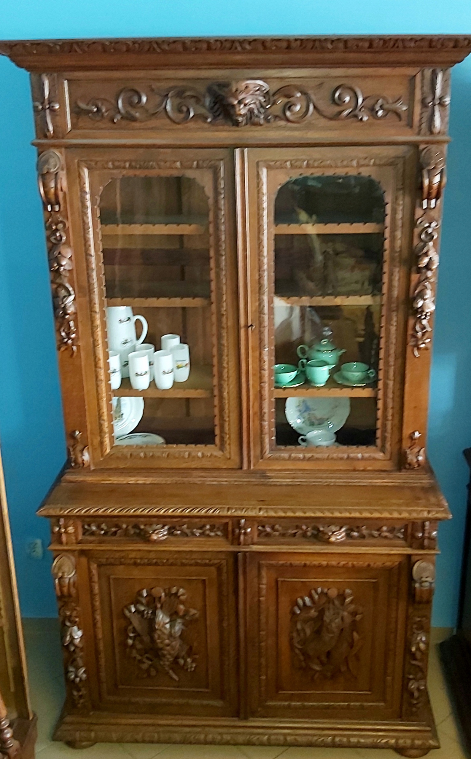 Красивий сервант Neo -renaissance. Отримайте прикраси у вигляді скульптур з мотивами тварин та дуже цікавими ручками. Стен, як на знімках, дуже добре. Регульований. Регульований. Оригінальний Мебель. Оригінальний Мебель, один у своєму роді. Якщо у вас є запитання, ви хочете більше фотографій. Ти.