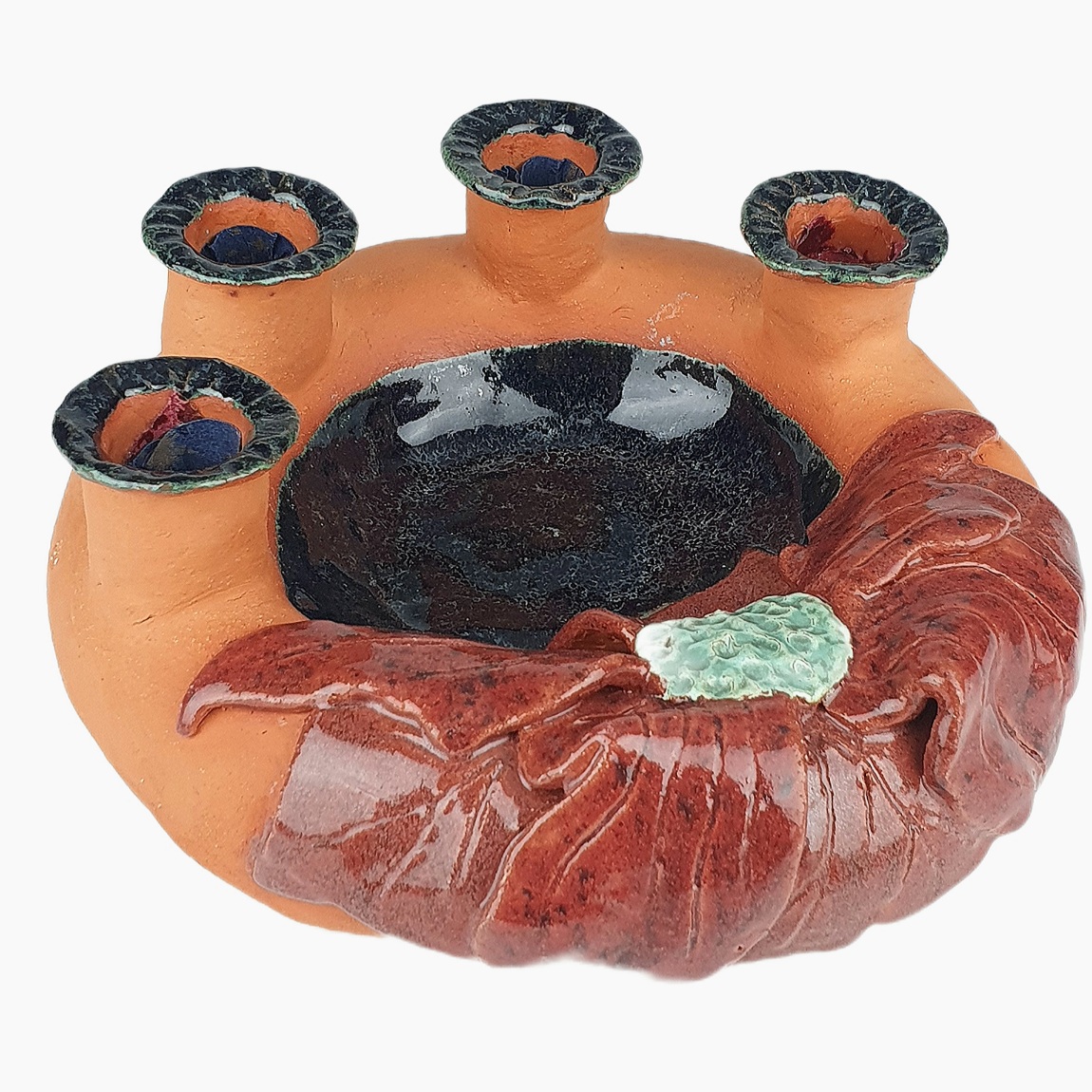 МАСИВНА ПІДСТАВКА ПІД СВІЧКИ З ЧАСТКОВОЇ ГЛАЗУВАННЯ РУЧНОЇ РОБОТИ.