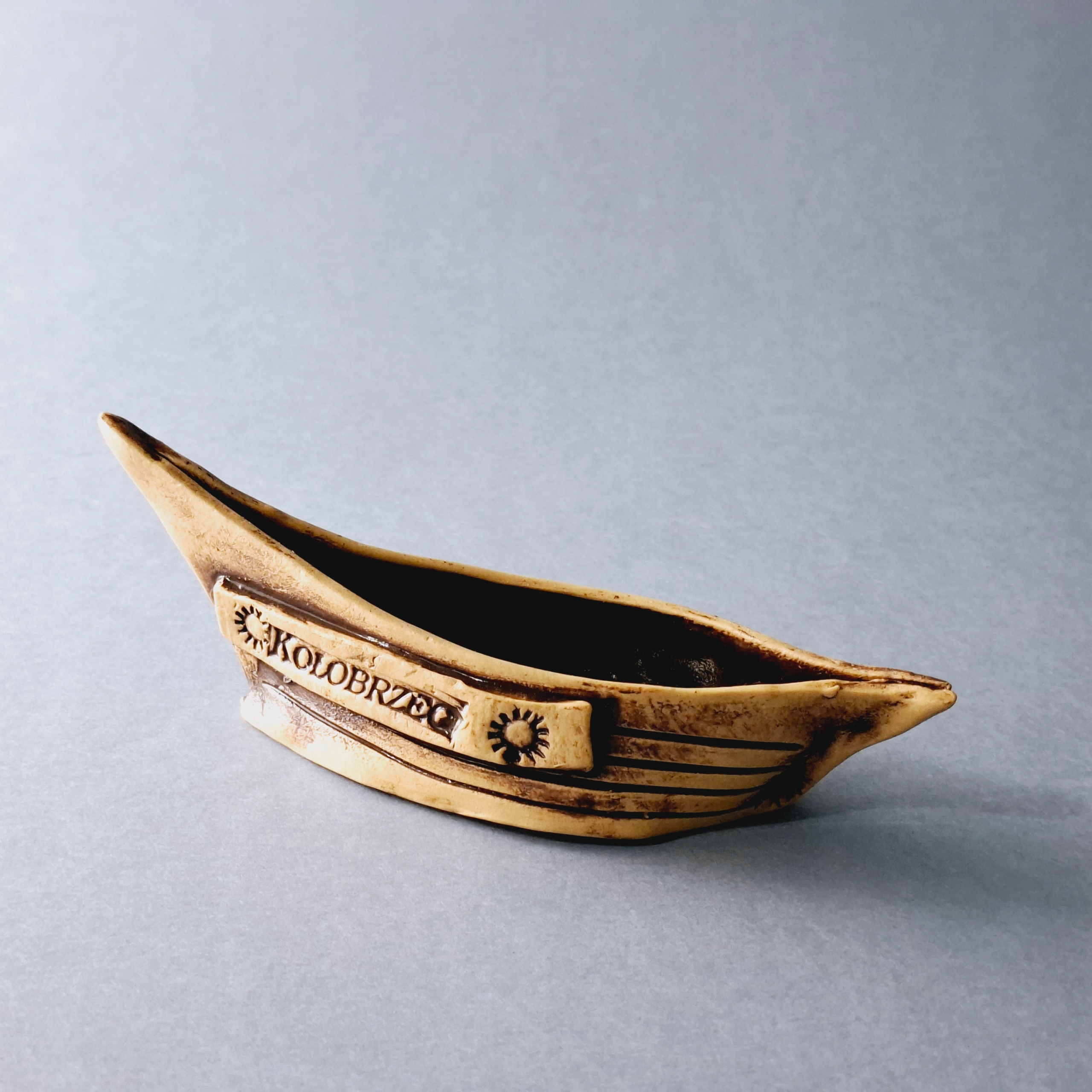 GLINIANA ŁÓDKA PAMIĄTKA NACZYNIE KOŁOBRZEG