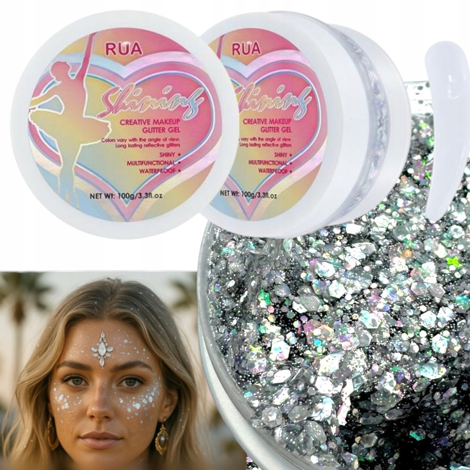 ГЛІТТЕР Обличчя Тіло Волосся БЛИСКІВ ГЕЛЬ Блискучий гель Блискуче СРІБЛО