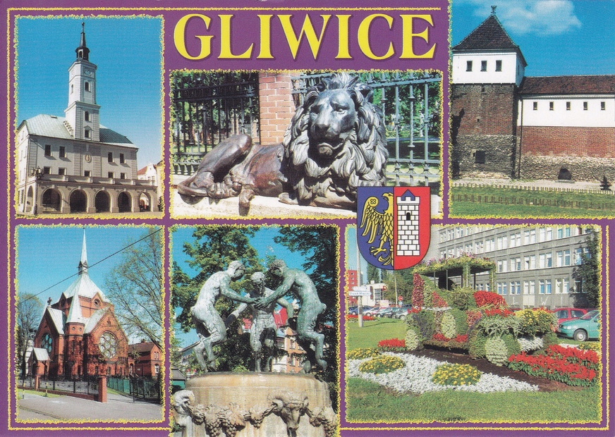 ГЛІВІЦЕ - РАТУША - ЗАМОК - ЦЕРКВА - ФОНТАН - ВУЛ. ДВОРЦОВА - ГЕРБ. Без тиражу. Стан - дуже хороший - (незначна зміна кольору на зворотному боці).