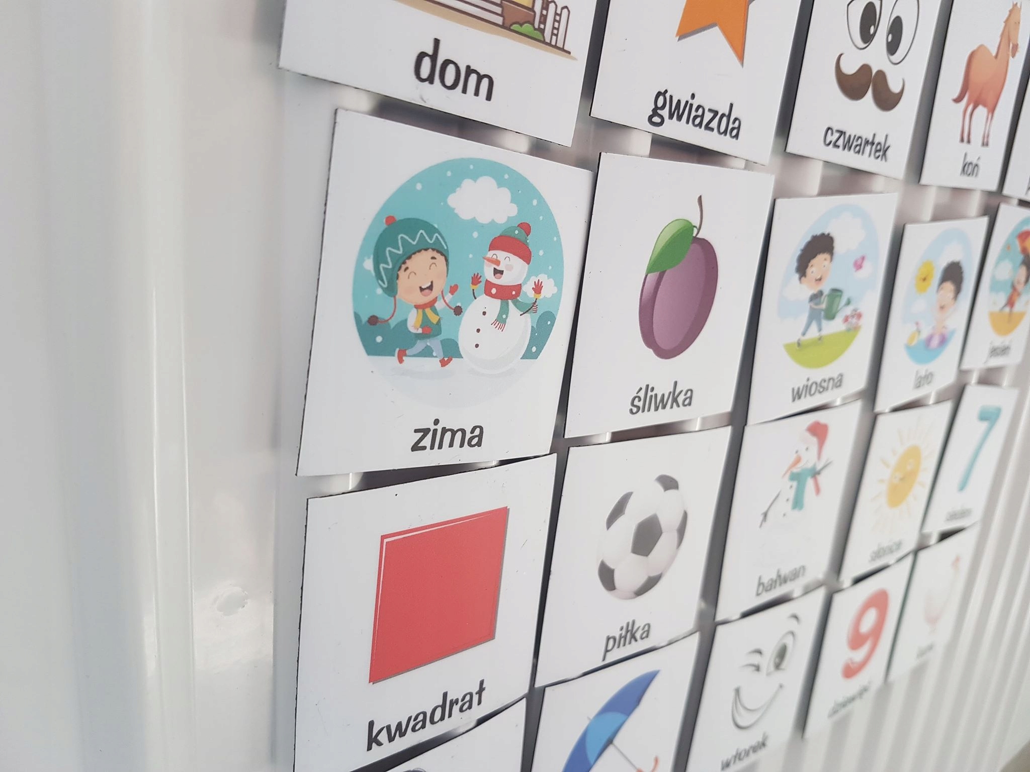 Набір із 72 предметів - магніти для навчання через глобальне читання - усі елементи однакового розміру. Квадрати зі стороною 6 см.