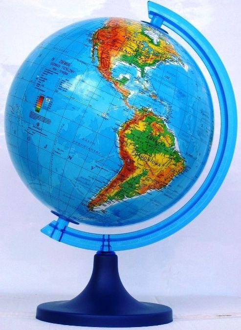 Глобус 250 з фізичною картою. Ідеально підходить для засвоєння знань з географії. Він ілюструє всі елементи форми земної кулі. Глобус розміщений на пластмасовому меридіані та пластмасовій основі.