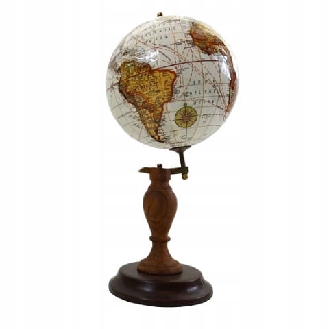 Глобус висотою 27 см. Красивий глобус, географічні назви англійською.Дерев'яна основа - темно-коричнева, латунна фурнітура. Ламінована карта. Гарний декоративний елемент.