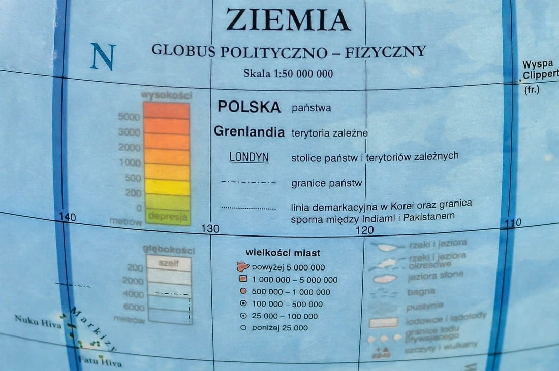 Глобус містить політичну карту світу, а при виділенні з’являється фізична карта.
