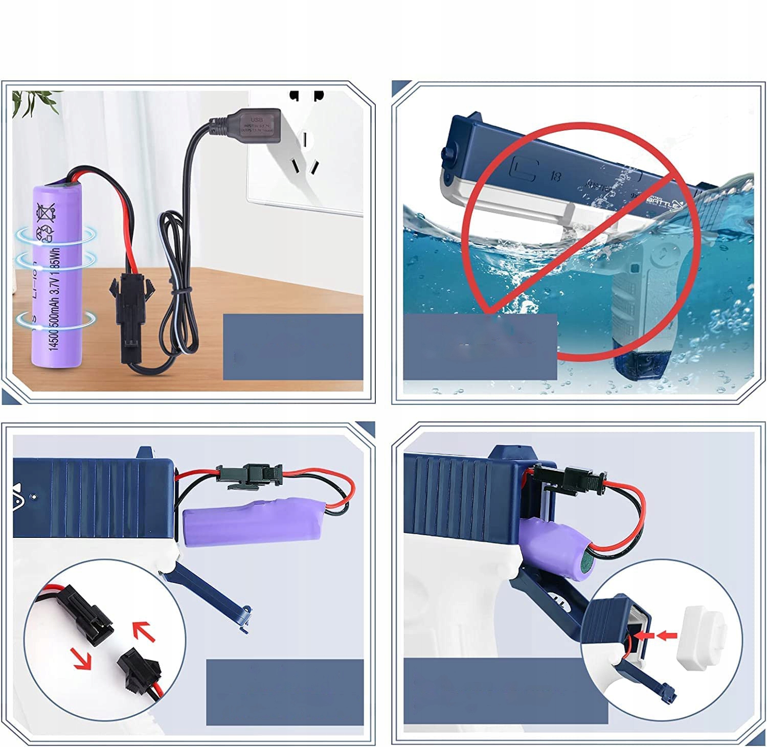 🔫Акумуляторні батареї для електричних водяних пістолетів підтримують зарядку через USB для постійного використання. Водонепроникний дизайн батарейного відсіку, безпечніший у використанні.