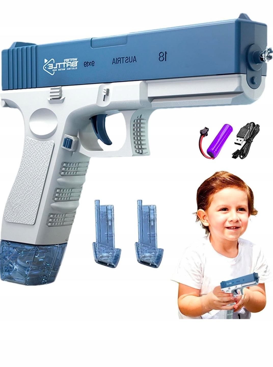 електрична водна пістолет стріляє водою під високим тиском. Ідеально під час гри, śngus dyngus, для освіження в спекотні дні.