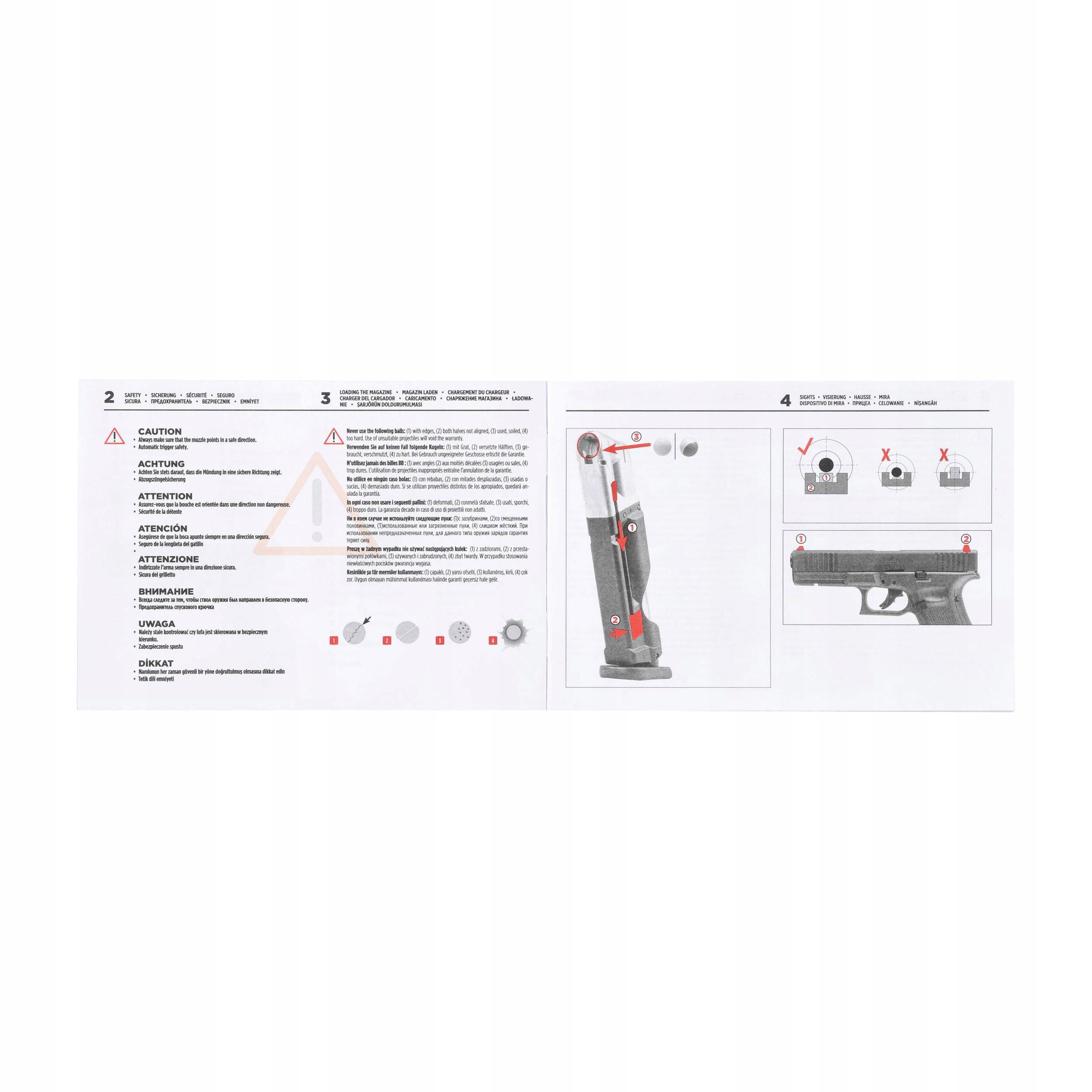 Залежно від типу та ваги, випущені кулі досягають максимальної швидкості приблизно 250 кадрів/с. Ми зробимо до 40 пострілів із повної капсули CO2 з однаковою початковою швидкістю. Кількість пострілів також залежить від температури повітря, динаміки стрільби та правильного догляду за рушницею. Завантажувальний отвір магазину розширено, утворюючи так звану воронку, що полегшує та прискорює заміну та заряджання магазину.