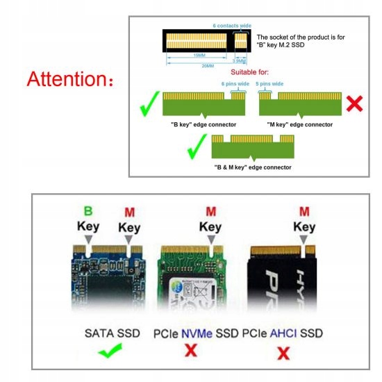 - Примітка: підтримує NGFF SATA SSD (клавіша B і B+M), не підтримує PCIe NVMe SSD і PCIe AHCI SSD