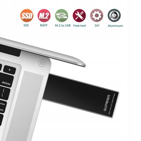 Цей тонкий корпус SSD кишенькового розміру розроблено спеціально для портативності. . Чохол має легкий, але міцний дизайн, який легко поміститься в кишеню або сумку для ноутбука. Для додаткової зручності футляр повністю живиться від шини USB-хосту і не потребує зовнішнього джерела живлення.