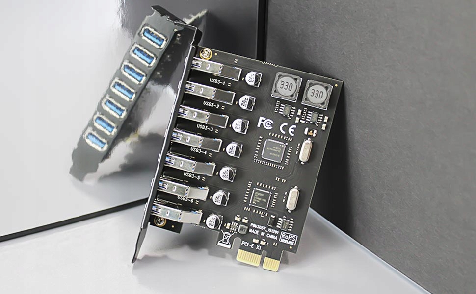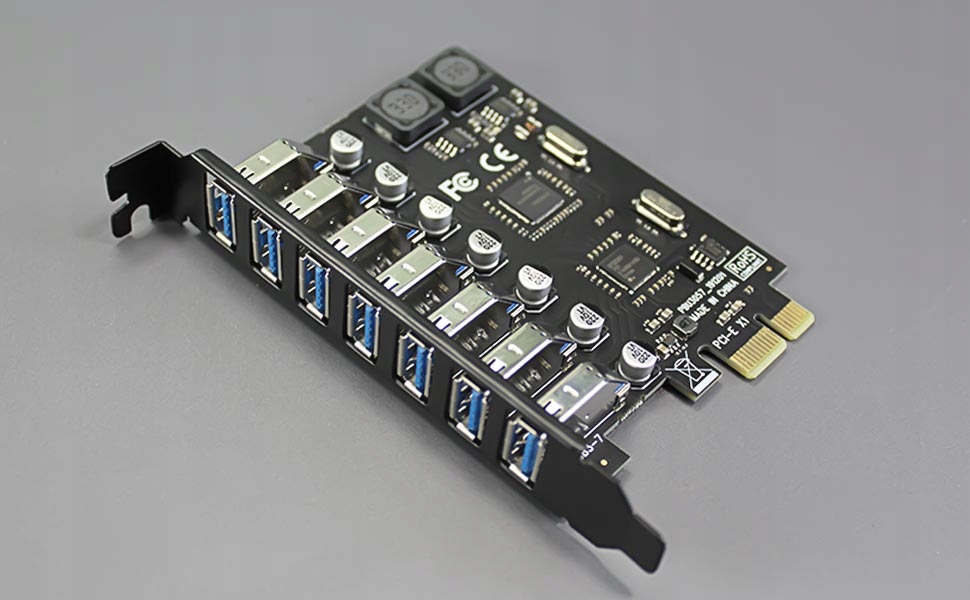 - Додає 7 портів USB-A до настільного комп’ютера через слот PCIe x1