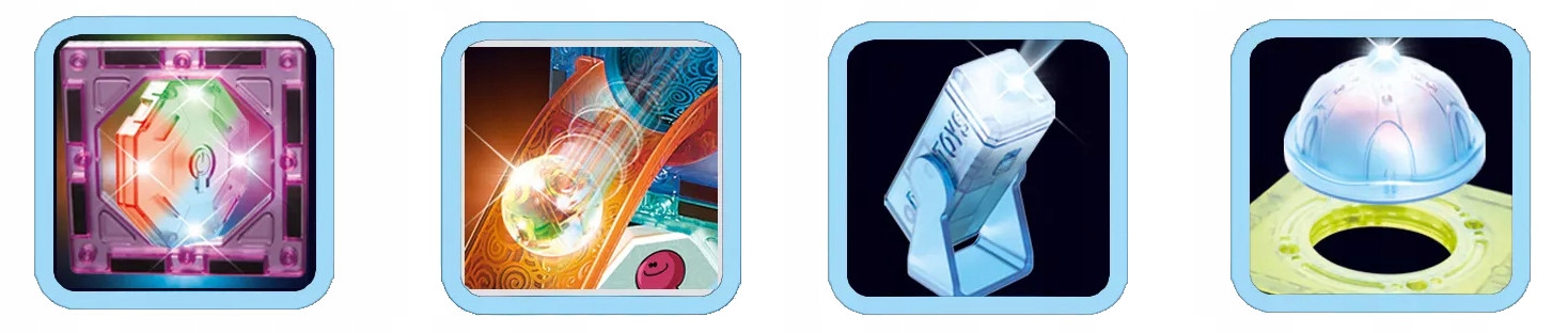 Деякі елементи набору мають світлові ефекти, а самі кульки світяться при струшуванні. Блоки також можна підсвічувати завдяки прожекторам, які входять до комплекту. Все це створює дивовижний ефект, справляючи найкраще враження в темній кімнаті.