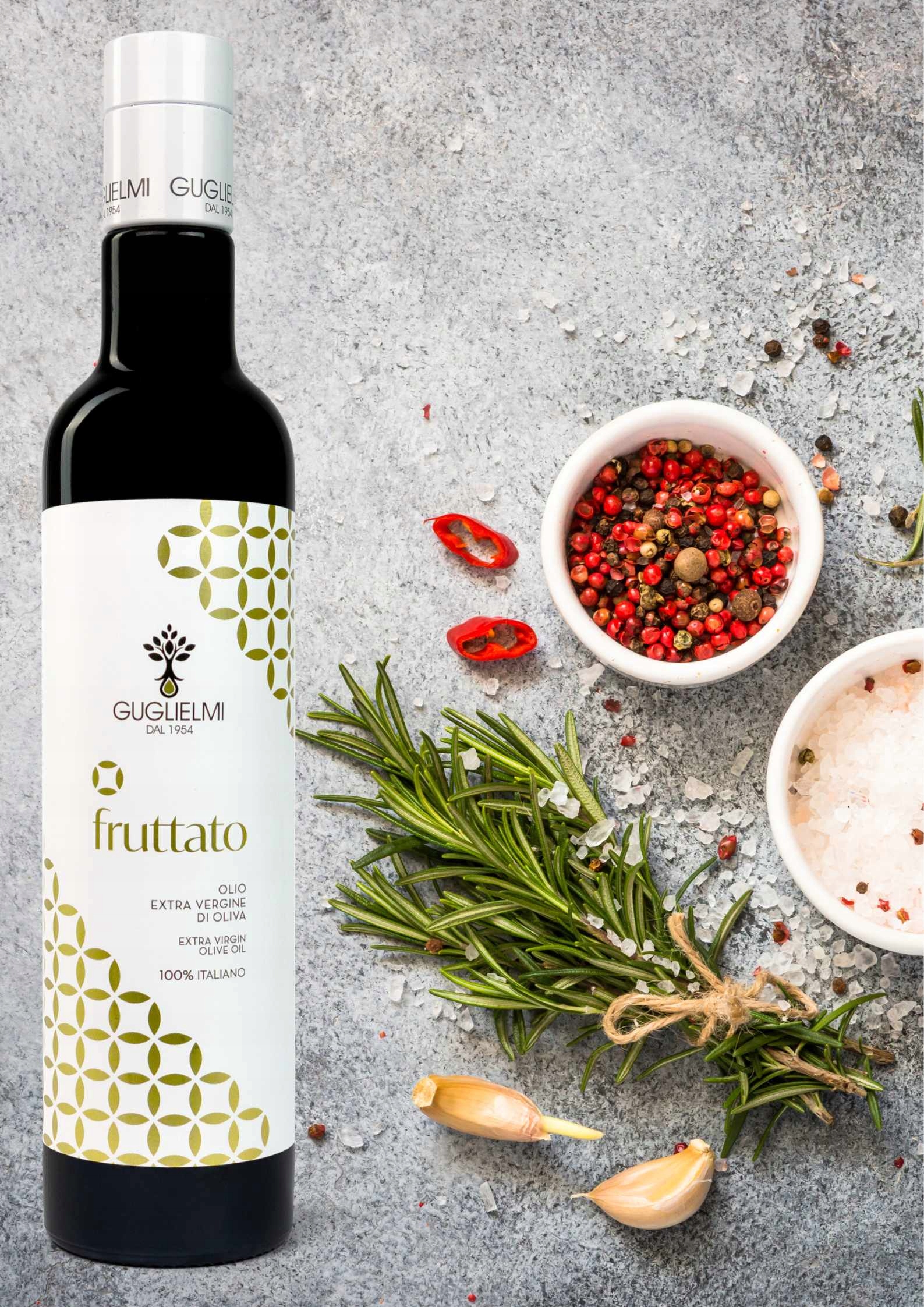 glugielmi поєднує традицію з сучасністю, використовуючи інноваційні методи холодного пресування, які дозволяють підтримувати повний смак та харчові властивості оливкової олії. Завдяки цьому кожна пляшка монограми фруттато - це суть природної досконалості, укладеної в скляну пляшку, щоб повністю захистити її смак та ароматичні якості.