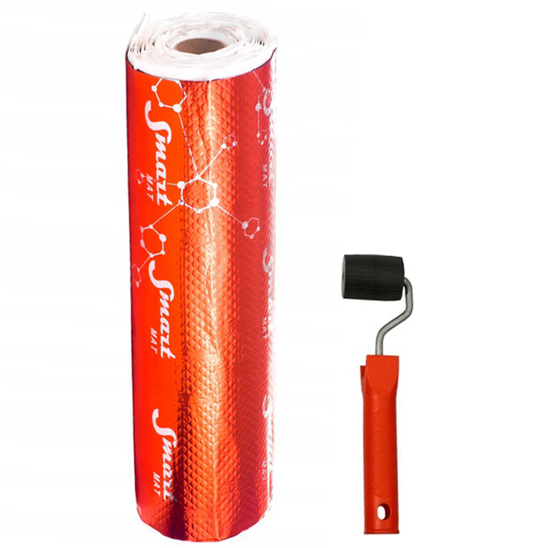 - Відірвіть фольгу захистити клей і притиснути його до звукоізоляційної поверхні. Для притискання килимканеобхідно використовувати притискний валик - валик входить в комплект.