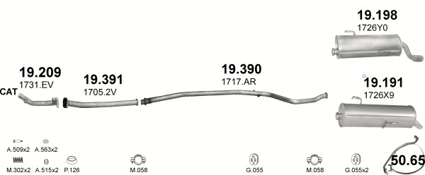 Глушник + труби комплект Peugeot 206 місткість 1,1-1,4 00-06р.