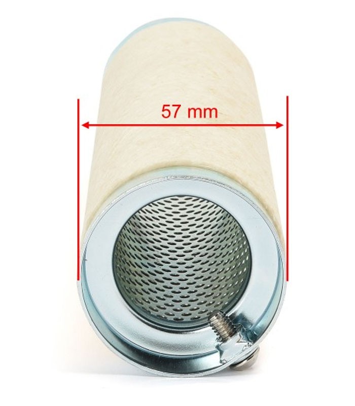 Примітка: 2 / 1/4" — це лише позначення виробника; фактичний зовнішній діаметр глушника становить 57 мм, і цей розмір слід брати до уваги під час вибору глушника.