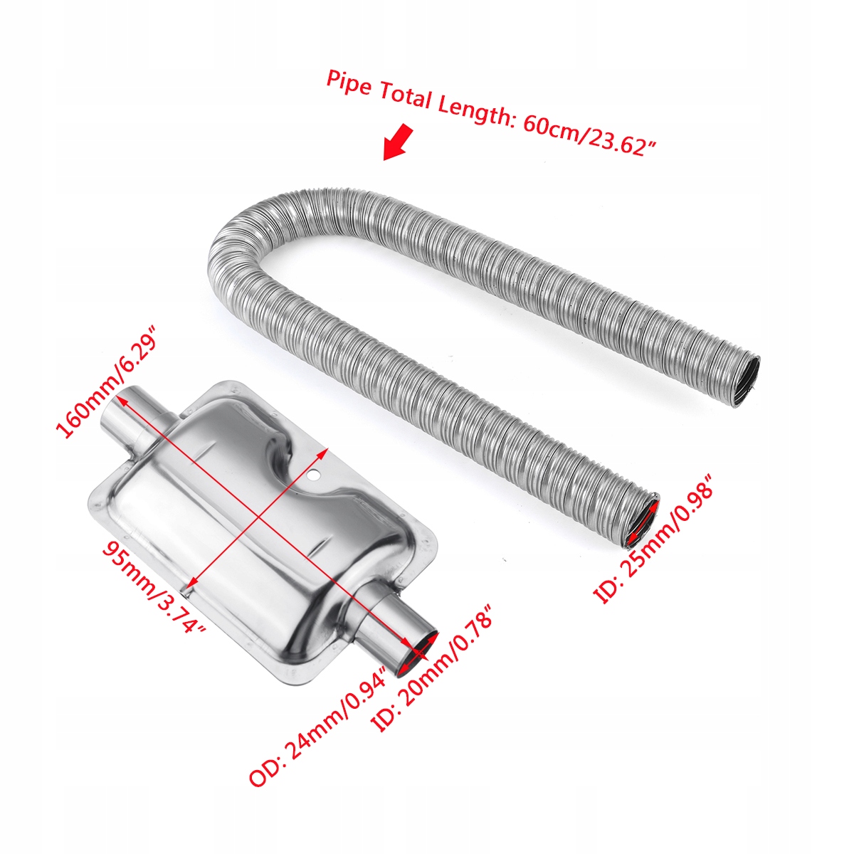 External diameter of the muffler: 24mm/0.94 inch