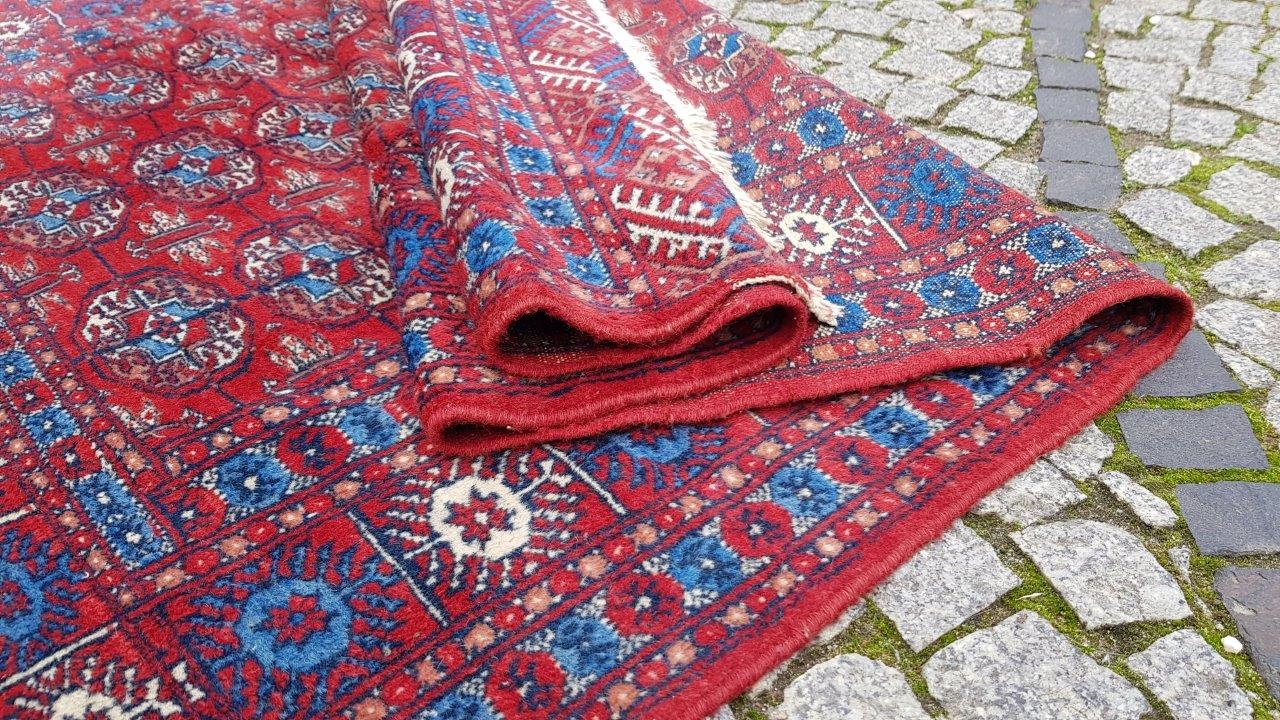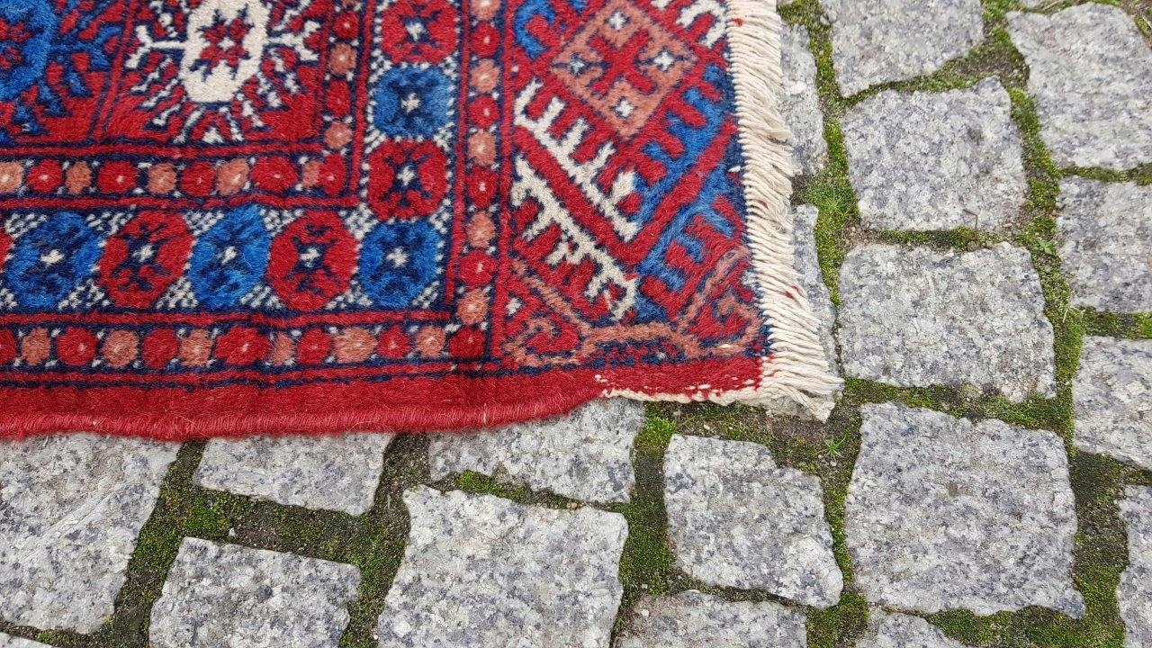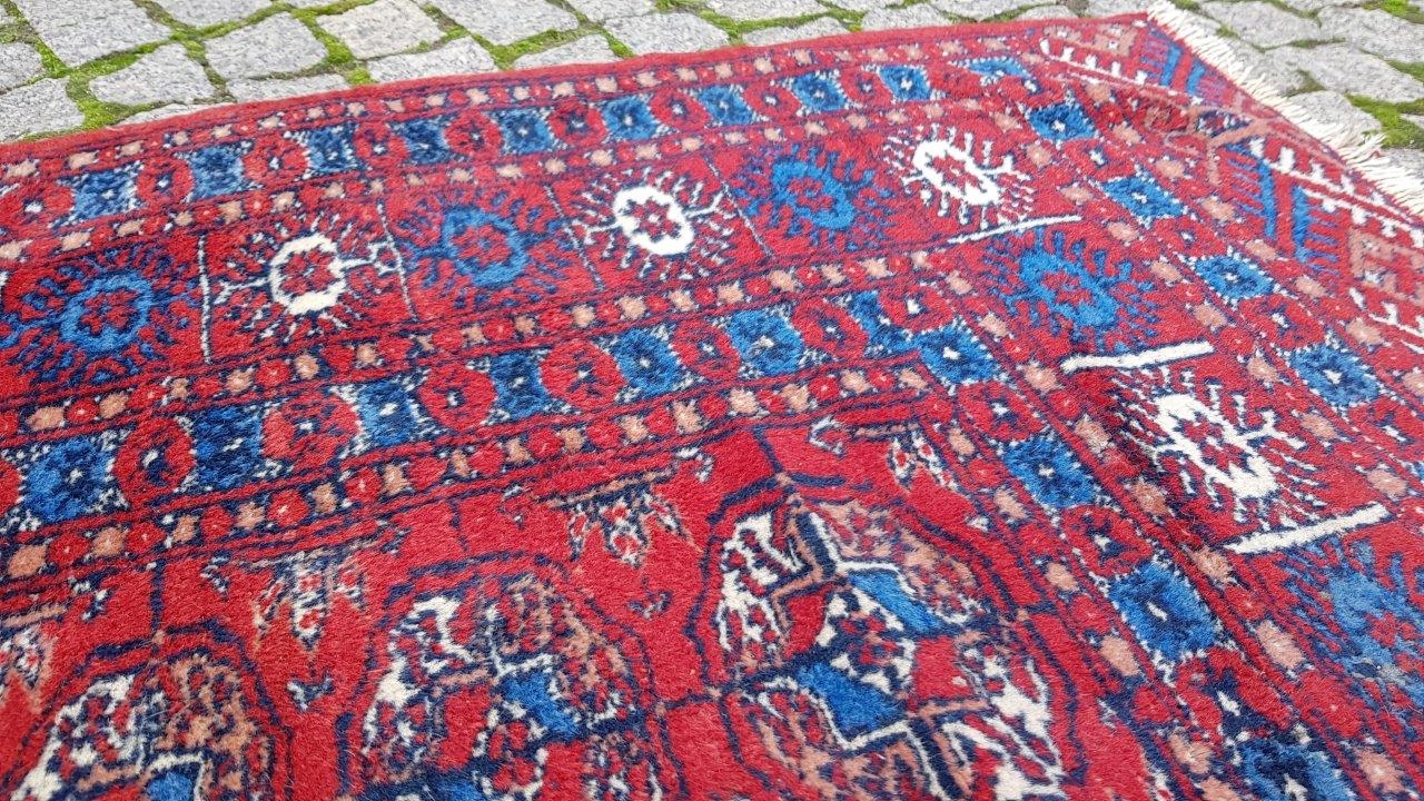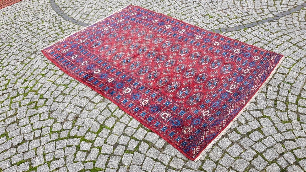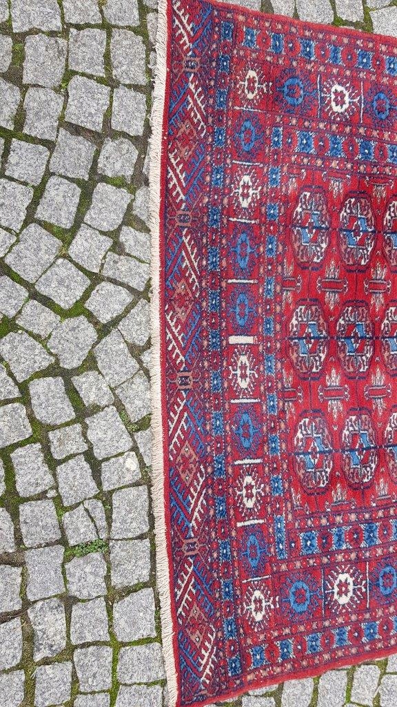 Бухарський килим. Виткана вручну з полірованої вовни найвищої якості. Характеризується компактним, приємним на дотик, блискучим флісом і красивими кольорами та візерунками. В хорошому стані, видно на фото.