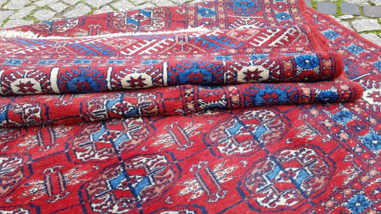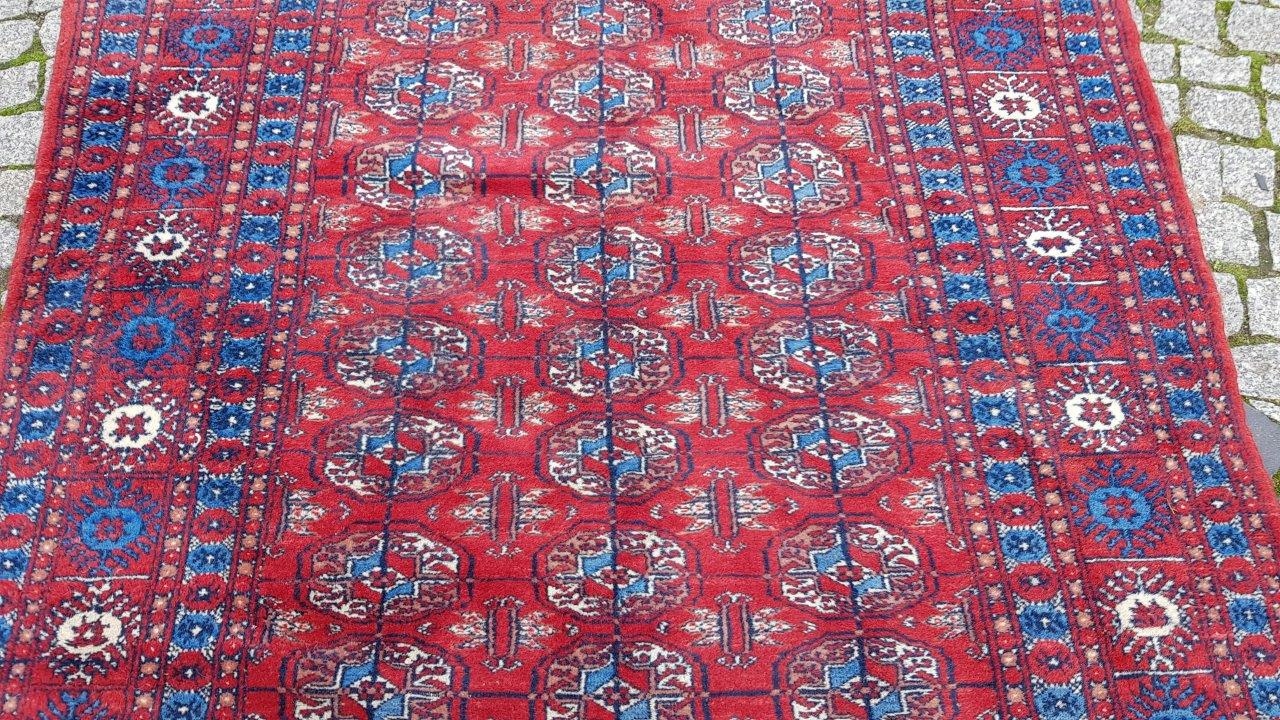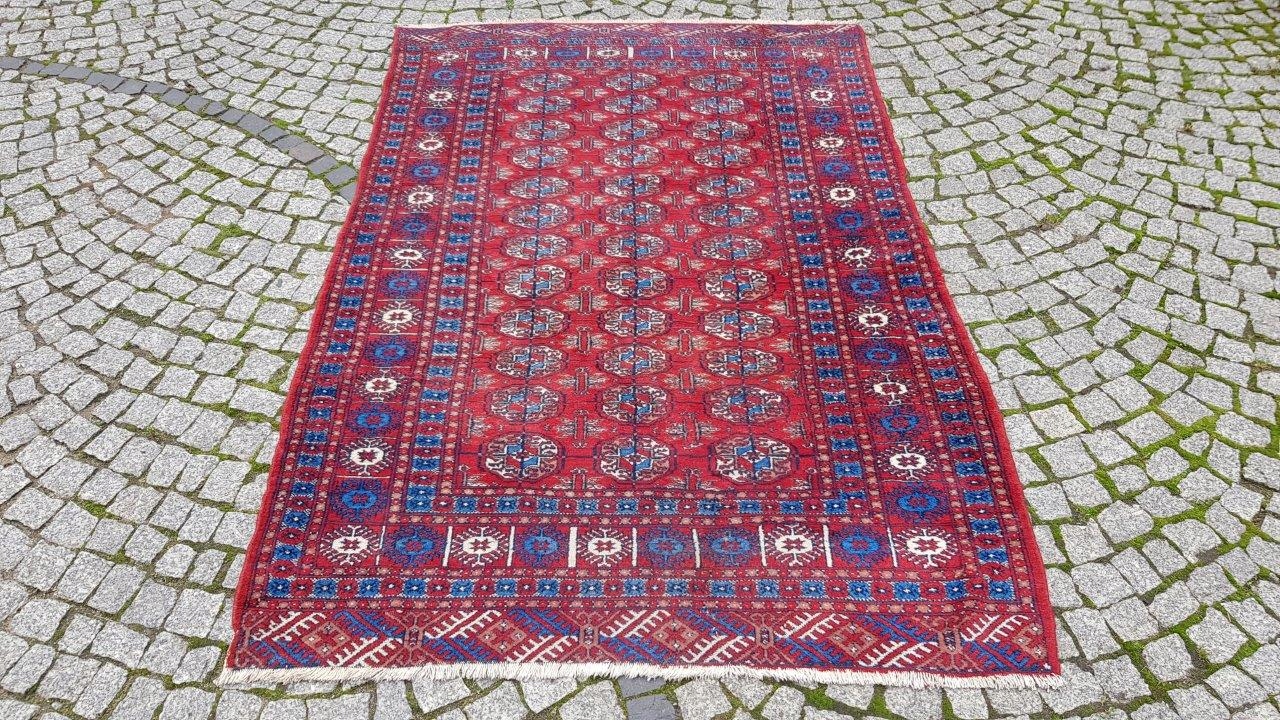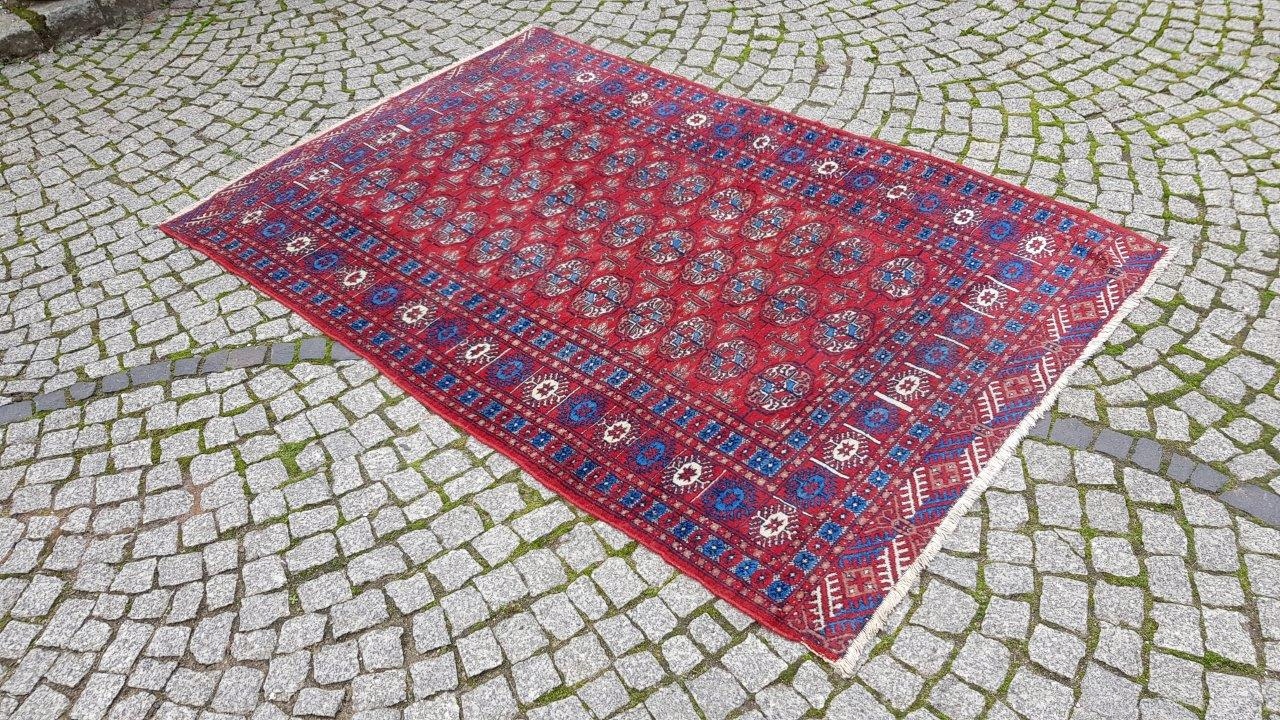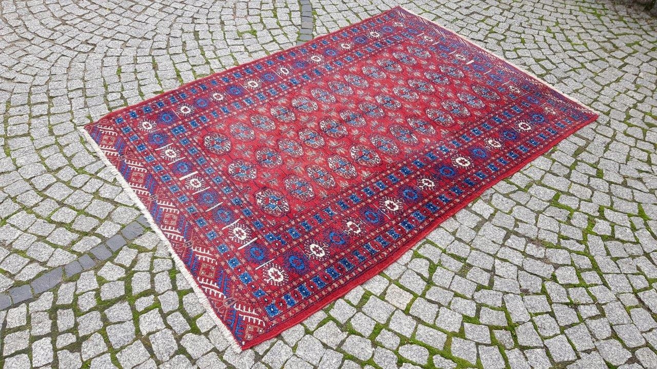 Бухарський килим. Виткана вручну з полірованої вовни найвищої якості. Характеризується компактним, приємним на дотик, блискучим флісом і красивими кольорами та візерунками. В хорошому стані, видно на фото.