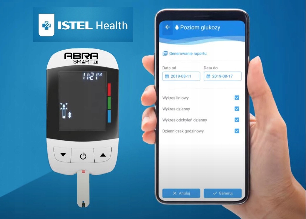 Глюкометр Abra Smart BT — це сучасний глюкометр із функцією Bluetooth. Дозволяє надсилати результати в мобільний додаток ISTEL HEALTH, який працює з безкоштовною інноваційною телемедичною системою Istel Care. Підключення глюкометра до програми не є обов’язковим для проведення вимірювань, функція надає додаткові можливості – за допомогою додатку Istel Health пацієнт створює обліковий запис у Istel Care System і може відправляти результати своїх вимірювань безпосередньо лікарю, не виходячи з дому. , або поділіться результатами з опікуном. Програма також дозволяє налаштовувати функції пристрою, створювати чіткі звіти, легко інтерпретувати результат і краще розуміти рівень глюкози завдяки кольоровому позначенню вимірювань.