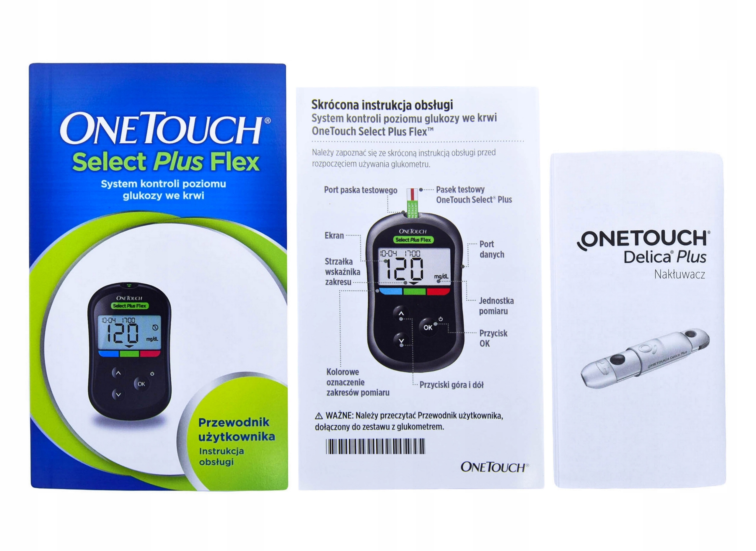 ІНСТРУКЦІЇ ПОЛЬСЬКОЮ (конфігурація пристрою, використання проколювача та ланцетів, правильне вимірювання).