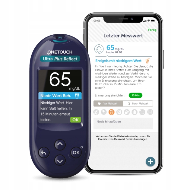 - Глюкометр OneTouch Ultra Plus Reflect пропонує персоналізовані рекомендації, розуміння та мотивацію, щоб допомогти вам уникнути гіпоглікемії. *