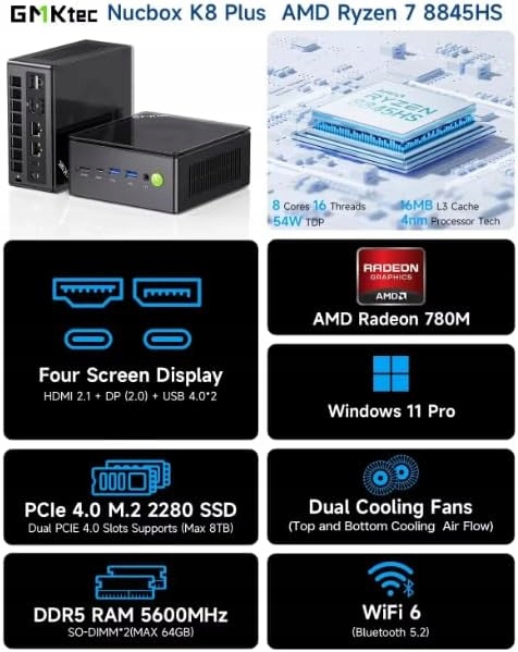 GMKTEC K8 Plus Mini PC AMD Ryzen 7 8845HS Win11 DDR5 WiFI6/BT5.2 ВАЛЕЛИ