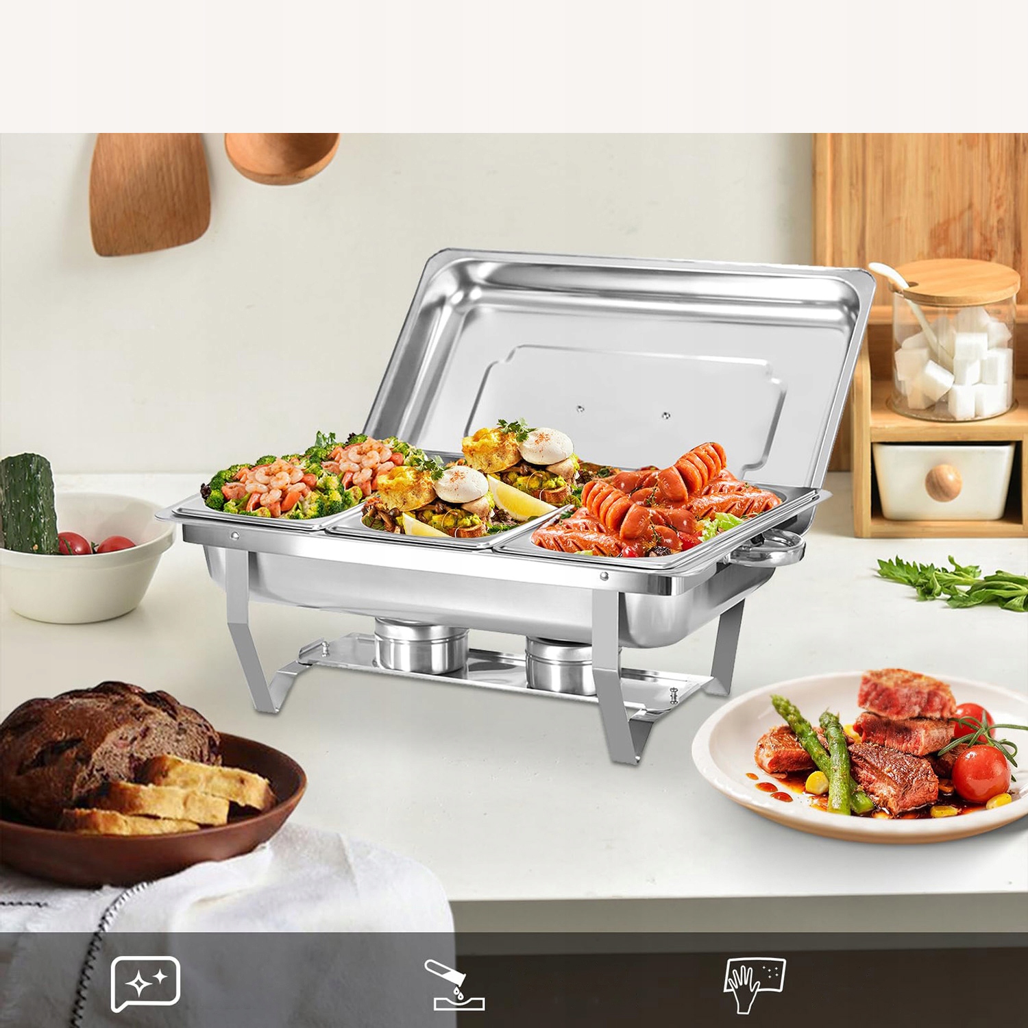 【Широке застосування】 Обігрівач ідеально підходить для місць самообслуговування, таких як фуршети, зали для сніданків, бранчі, банкети, вечірки та весілля.