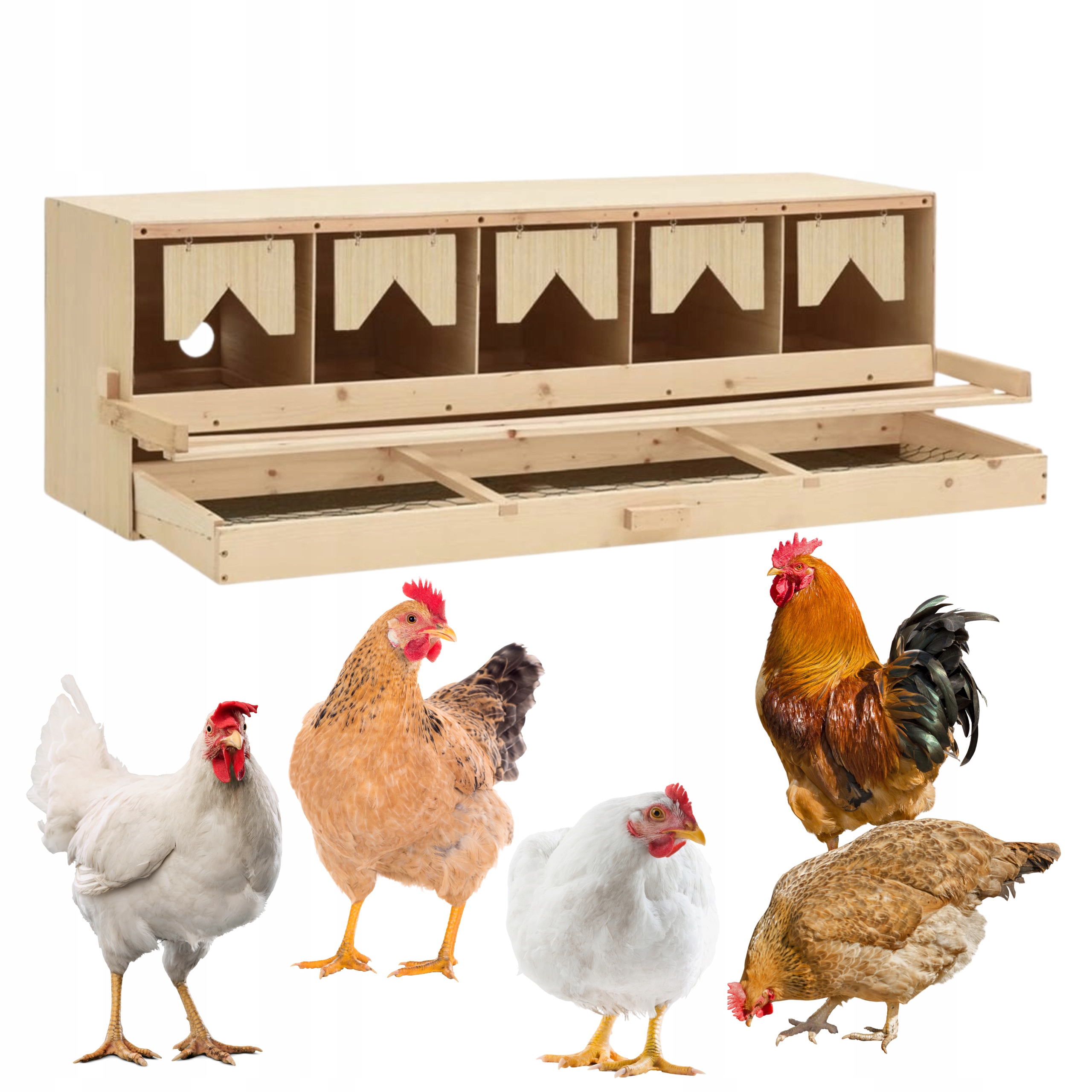 ГНІЗДА ДЛЯ КУРЕЙ-НЕСУСОК, 5 МІСЦЬ, З ЯЩИКОМ