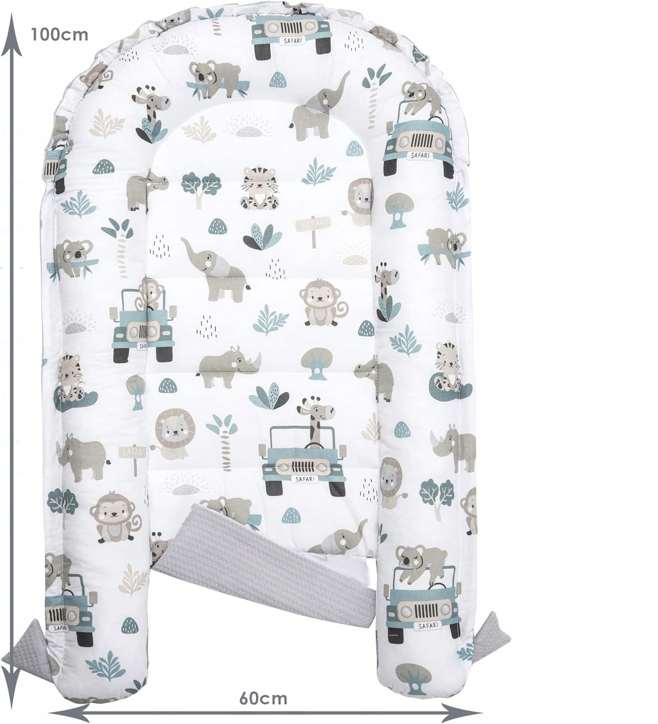 Бічні сторони гнізда наповнені гіпоалергенними силіконовими кульками. Підняті краї забезпечують безпеку дитини.