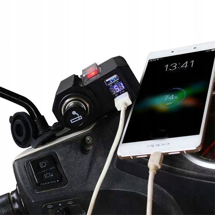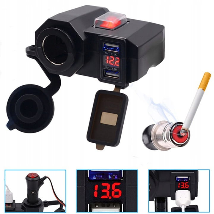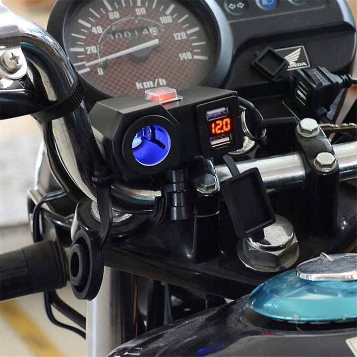 Водонепроникне гніздо прикурювача з вольтметром і двома USB-портами 5 В 2,1 А дозволяє швидко заряджати пристрої та контролювати напругу акумулятора в мотоциклі, скутері чи квадроциклі. Завдяки захистам, світлодіодному підсвічуванню і вимикачу розетка ідеально підходить для роботи в складних погодних умовах, забезпечуючи повний контроль над живленням.