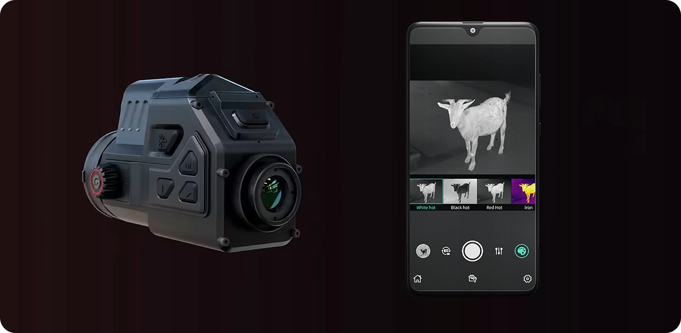 Завдяки вбудованому модулю WiFi (2.4G/5G) і додатку GUIDE TargetIR користувач може підключити ковпачок до телефону, дистанційно керувати функціями пристрою, переглядати фотографії та відео та ділитися живими зображеннями.