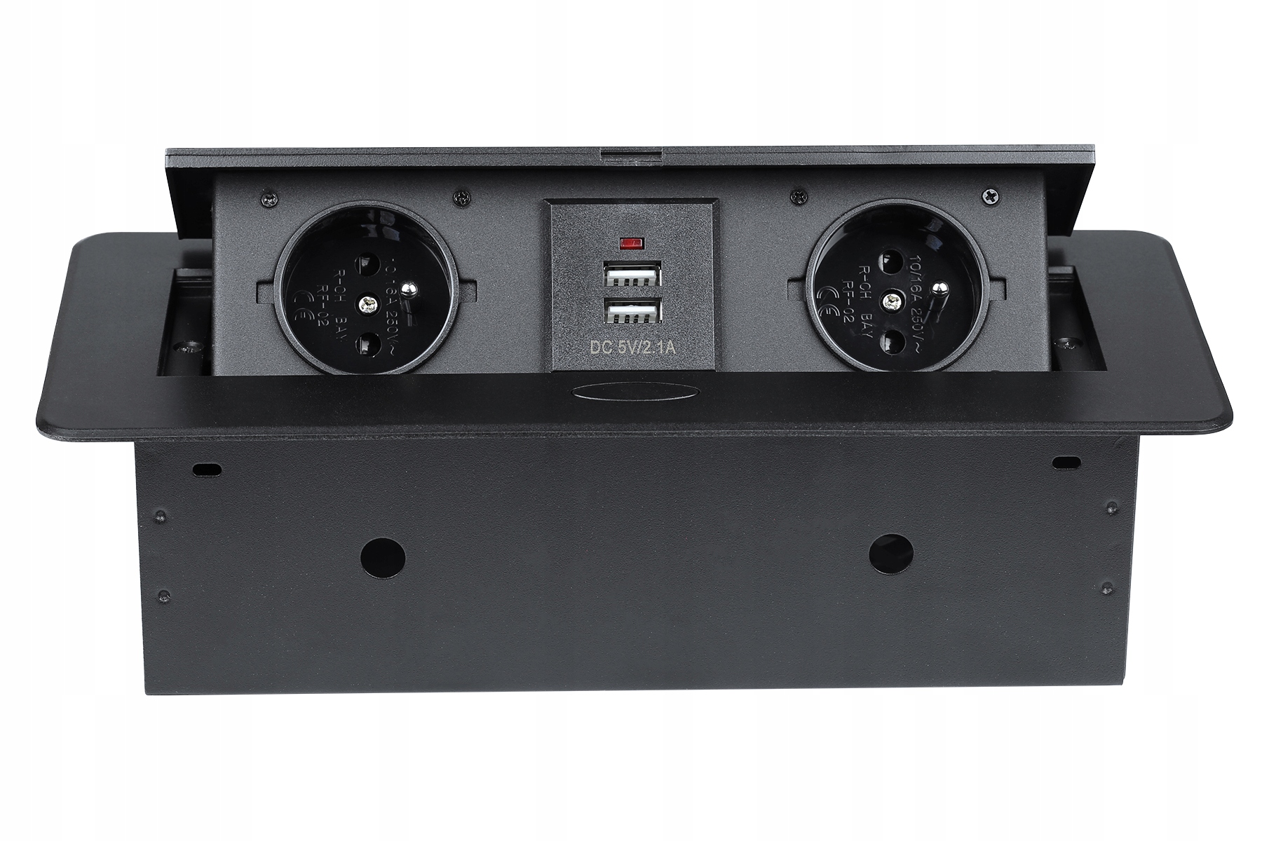 , призначених для монтажу в кухонних стільницях, столах, столах . Можлива горизонтальна та вертикальна установка дозволяє легко приховати розетки. > корпус, виготовлений з обережністю з високоякісним порошком, встановленим алюмінієм до чорного, матового кольору, буде змішуватися з кожним верхом, і це буде вмістити в будь -який інтер'єр.