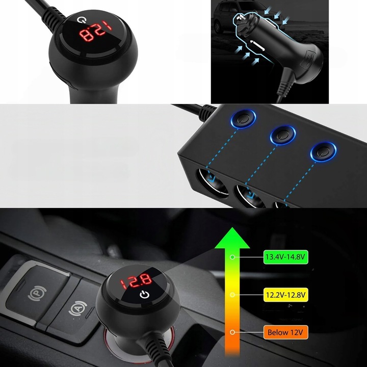 ✔️ Розгалужувач розетки прикурювача 12-24 В з 4 портами USB і вольтметром