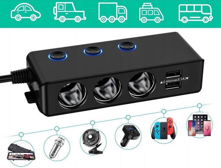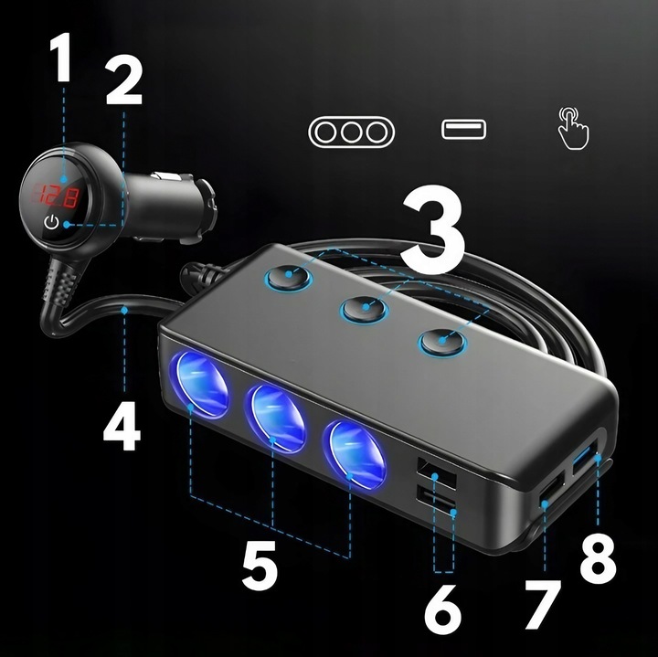 ⏩ 3 роз’єми прикурювача загальною потужністю 120 Вт – підключіть камеру, плеєр тощо пристрої