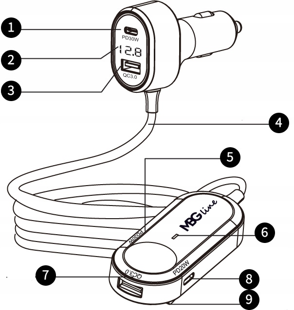 - Параметри TYPE-C PD30W: Вихід 5 В = 3 А / 9 В = 3 А / 12 В = 2,5 А
