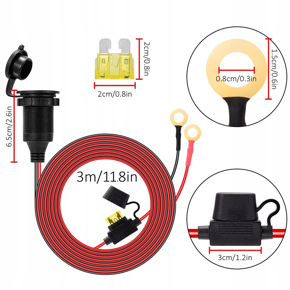 ✅Надійний провід 2,5 мм² (приблизно 13 AWG) підтримує великий струм 20 A. Блок запобіжників має вбудований запобіжник на 20 А, який може добре захистити автомобільний акумулятор.