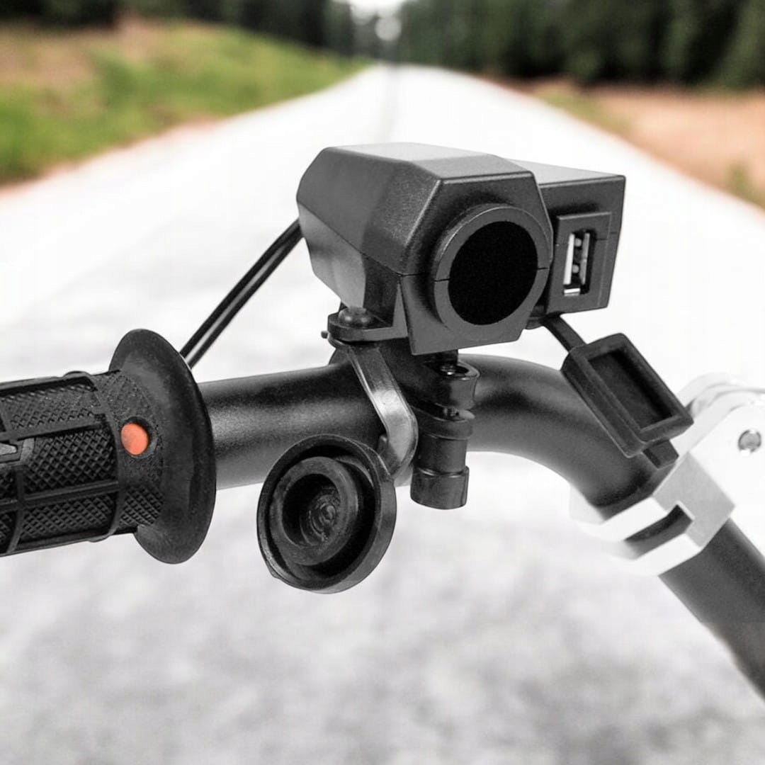 Універсальний прикурювач + USB-роз'єм MUS01 дозволяє заряджати два пристрої одночасно, пропонуючи стабільну напругу 5 В/2,1 А на USB-порті та 12-24 В на розетці прикурювача. Завдяки своїй водонепроникній конструкції (IP54) і простому встановленню це ідеальне рішення для живлення телефонів, GPS-навігації та камер на будь-якому типі мотоцикла.