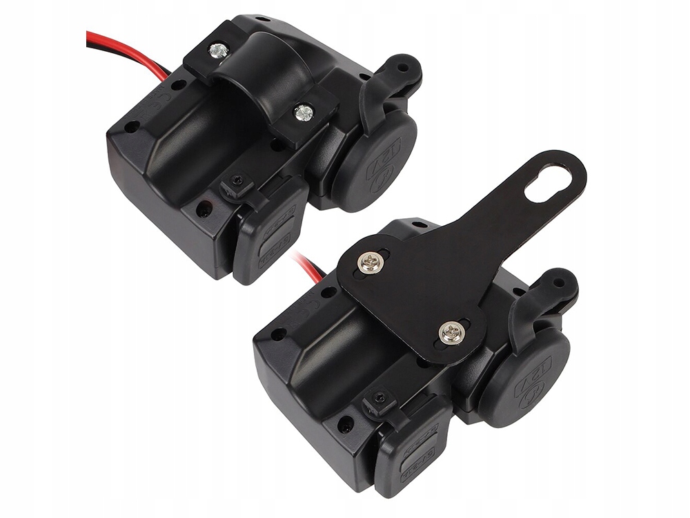 Водонепроникне гніздо прикурювача для мотоцикла, скутера, квадроцикла. Він оснащений вольтметром, який показує напругу зарядки акумулятора. Крім того, він має два порти USB 2.1A. Гніздо має дві гумові кришки, які захищають його від несприятливих погодних умов.