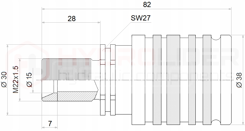Бічна різьба кабелю: зовнішня метрика 22x1,5