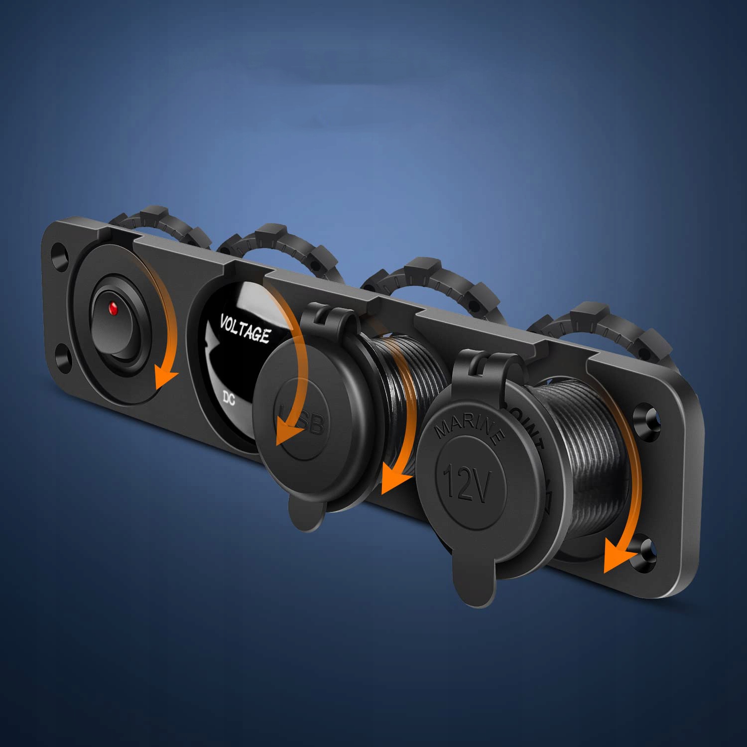 Гніздо зарядного пристрою 4-в-1 Панельний перемикач Вольтметр Прикурювач 2x USB