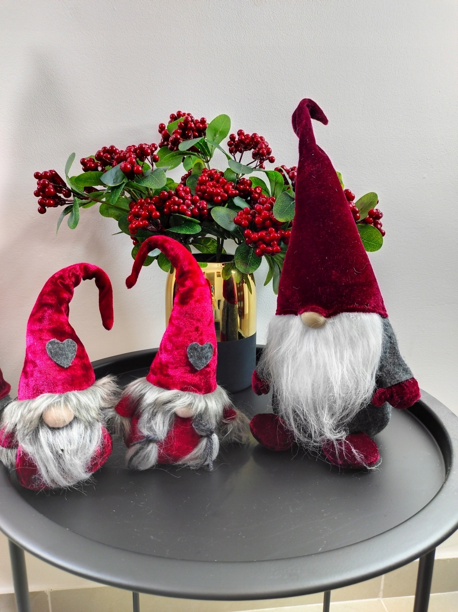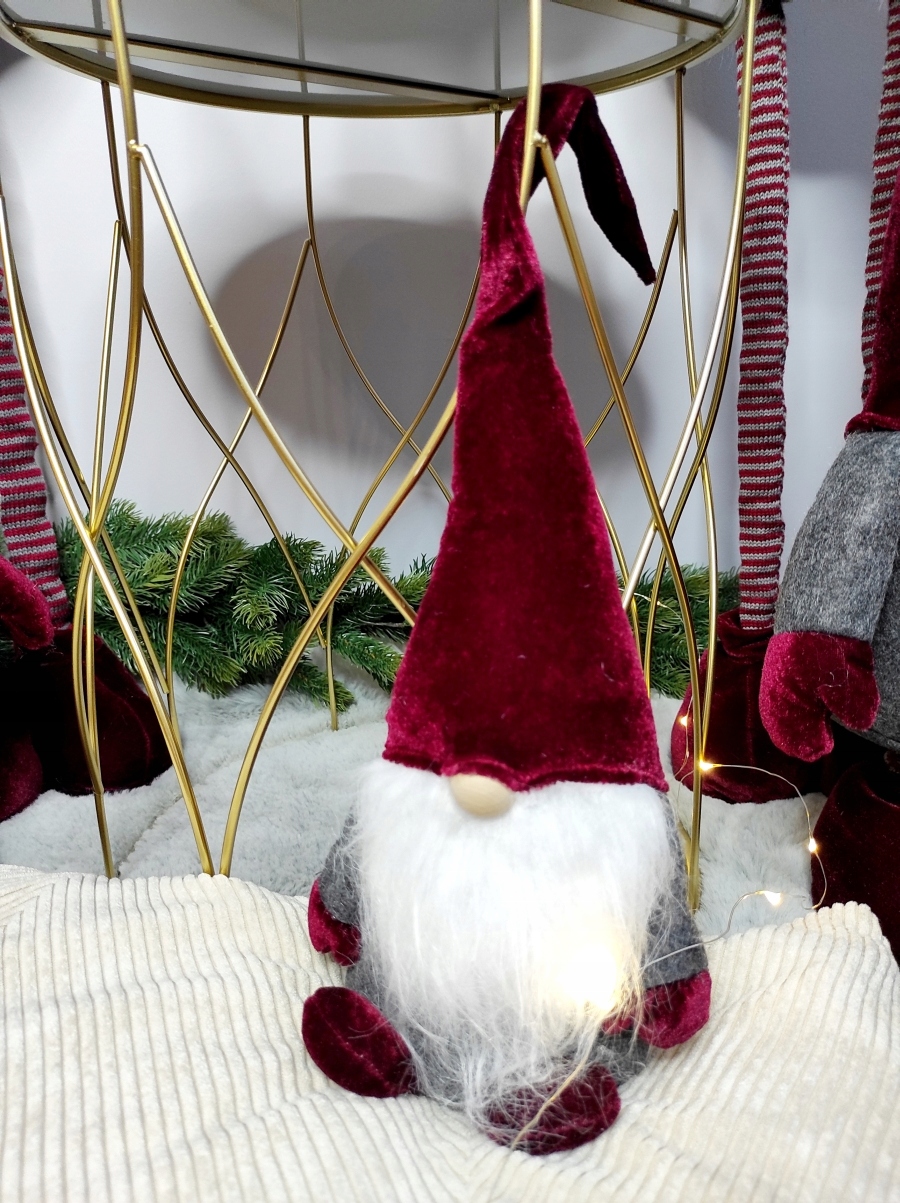 Гном стоячи сіро-бордовий 47см фетровий карлик